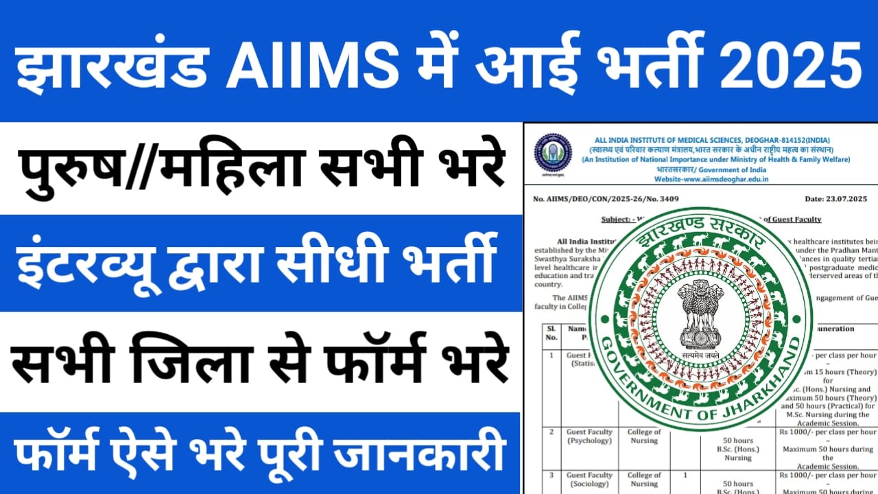 AIIMS Deoghar New Recruitment 2025: झारखंड AIIMS Deoghar में अलग – अलग पदों पर नई भर्ती आई है ईस भर्ती को झारखंड के सभी जिला के लोग आवेदन कर सकते है जो भी ईच्छुक अभियार्थी फॉर्म भरना चाहते है वो आवेदन करने से पहले ईस आर्टिकल को पूरा जरूर पढे ईस आर्टिकल में सारा जानकारी जैसे- योग्यता, उम्र सीमा, वेतन, आवेदन प्रक्रिया के बारे में बताया गया है
