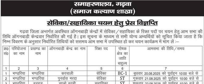 Jharkhand Anganwadi Vacancy 2025: झारखंड में आंगनवाड़ी में भर्ती आई है सेविका और सहायिका के पद पर जो भी ईच्छुक अभियार्थी फॉर्म भरना चाहते है वो आवेदन करने से पहले ईस आर्टिकल को पूरा जरूर पढे ईस आर्टिकल में सारा जानकारी जैसे- योग्यता, उम्र सीमा, वेतन, आवेदन प्रक्रिया के बारे में बताया गया है