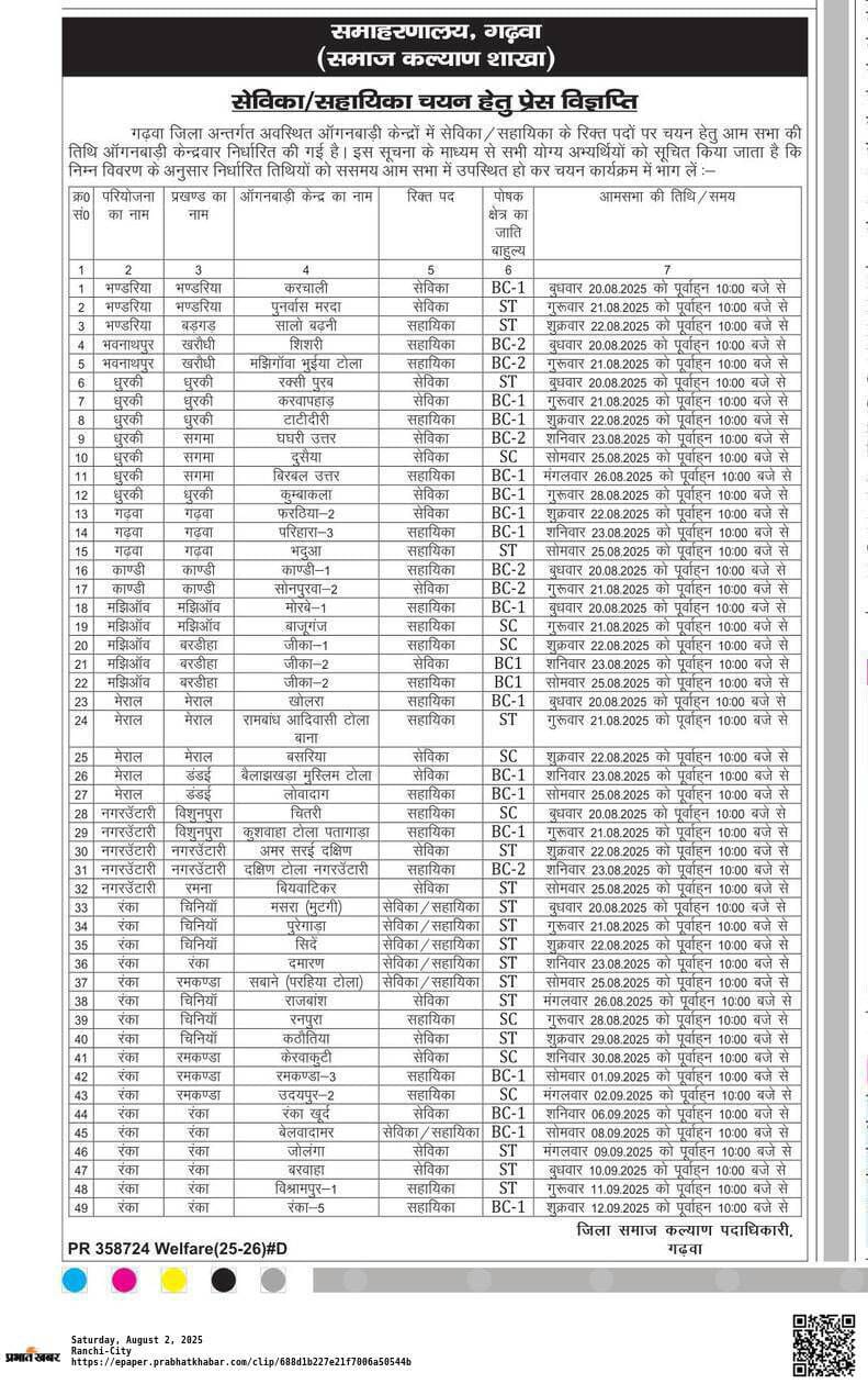 आवेदन करने के लिए आपको अपने प्रखंड/आंगनवाड़ी में जिस दिन आम सभा है उस दिन आपको सभी योग्यता दस्तावेज और जाति,स्थानीय, ये सारा डॉक्यूमेंट लेकर जाना होगा नीचे आपको नोटिफिकेशन pdf मिल जाएगा आपको उसमें चेक कर लेना है कि आपके प्रखंड/आंगनवाड़ी में कब है आम सभा