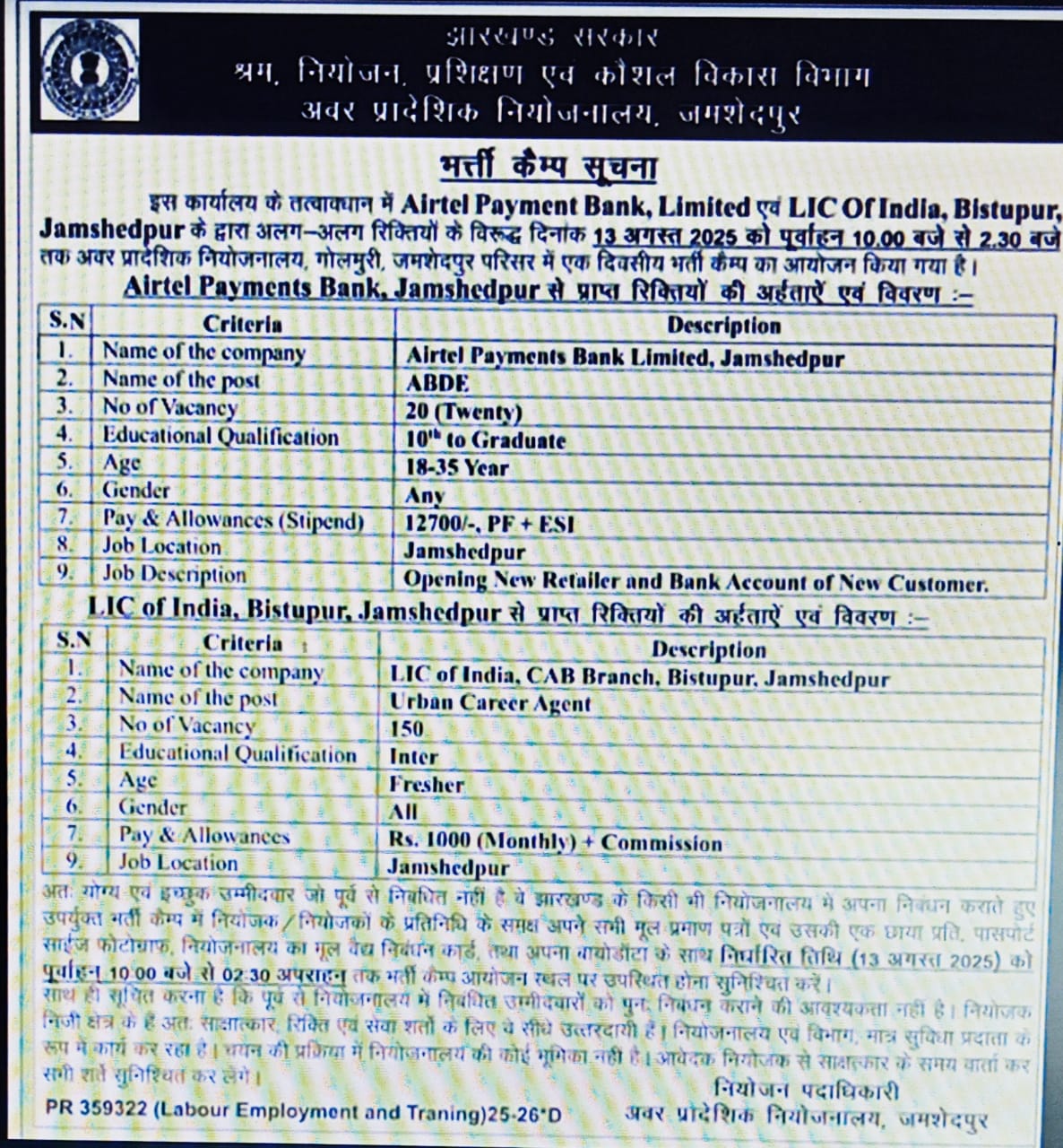 Jharkhand Rojgar Mela Update August 2025