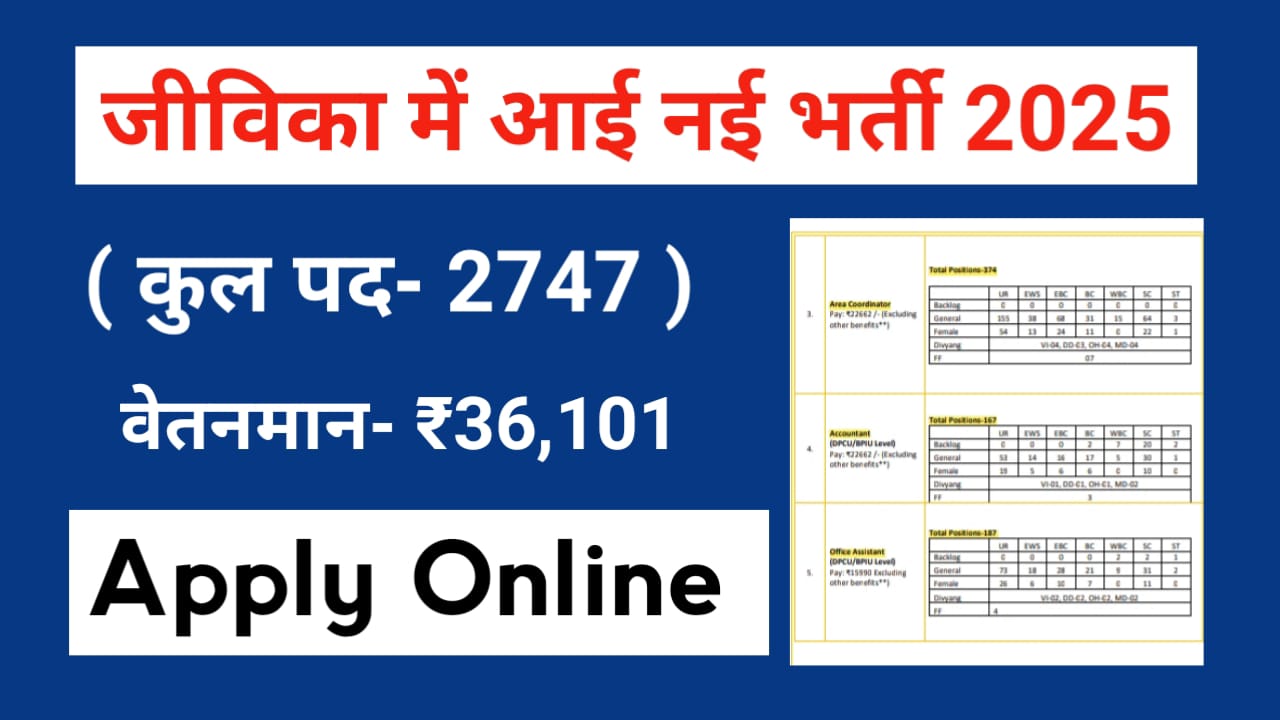 Jeevika New Recruitment 2025 for 2747 Post Apply Online